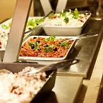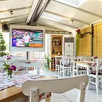 Restoranda sabahları açık büfe kahvaltı servis edilmektedir. Ayrıca bir lounge bar da bulunmaktadır. Sparta Pizza, Saint George Hotel & Medical Spa'e 550 metre uzaklıktadır.